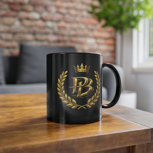 Black 11 oz Coffee Mug – Gold PB Laurel Crown Crest