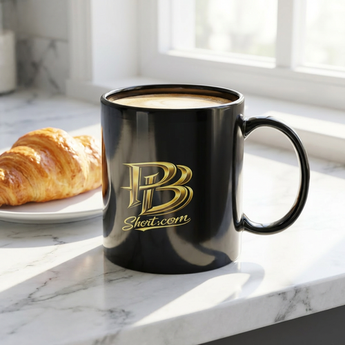 Black 11 oz Coffee Mug – Gold PB Short.com Script